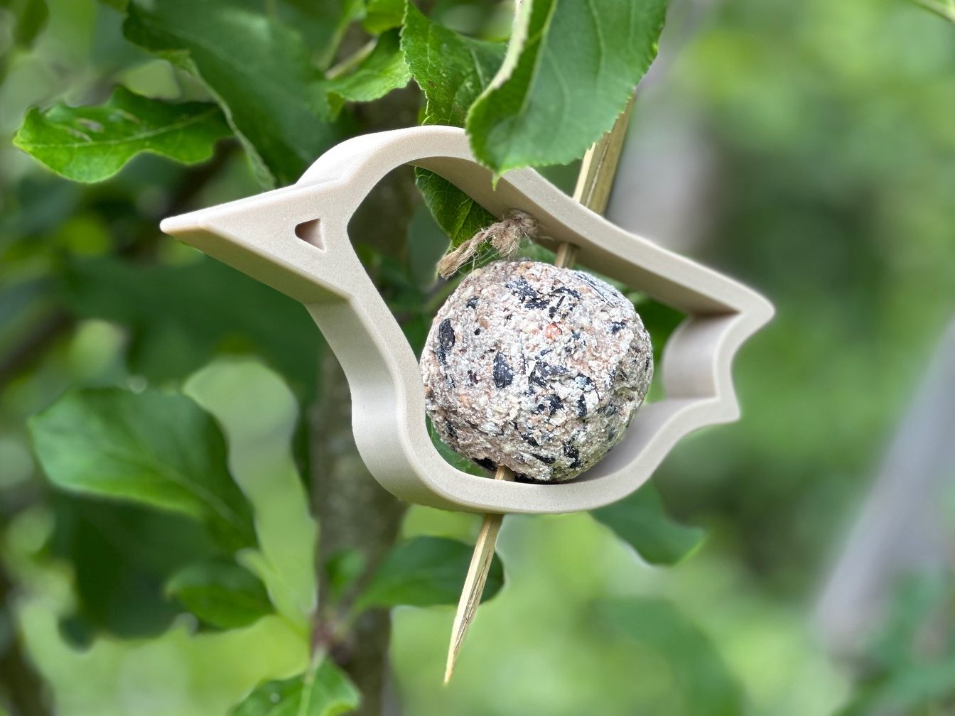 V2 of the Fat Ball Holder has been uploaded to Maker World. I think I prefer this outline shape and improvements have been made for slightly larger fat balls and the skewer now point downwards, and should stay in place better. https://makerworld.com/en/models/1505667-garden-birds-fat-ball-feeder-v2#profileId-1575731