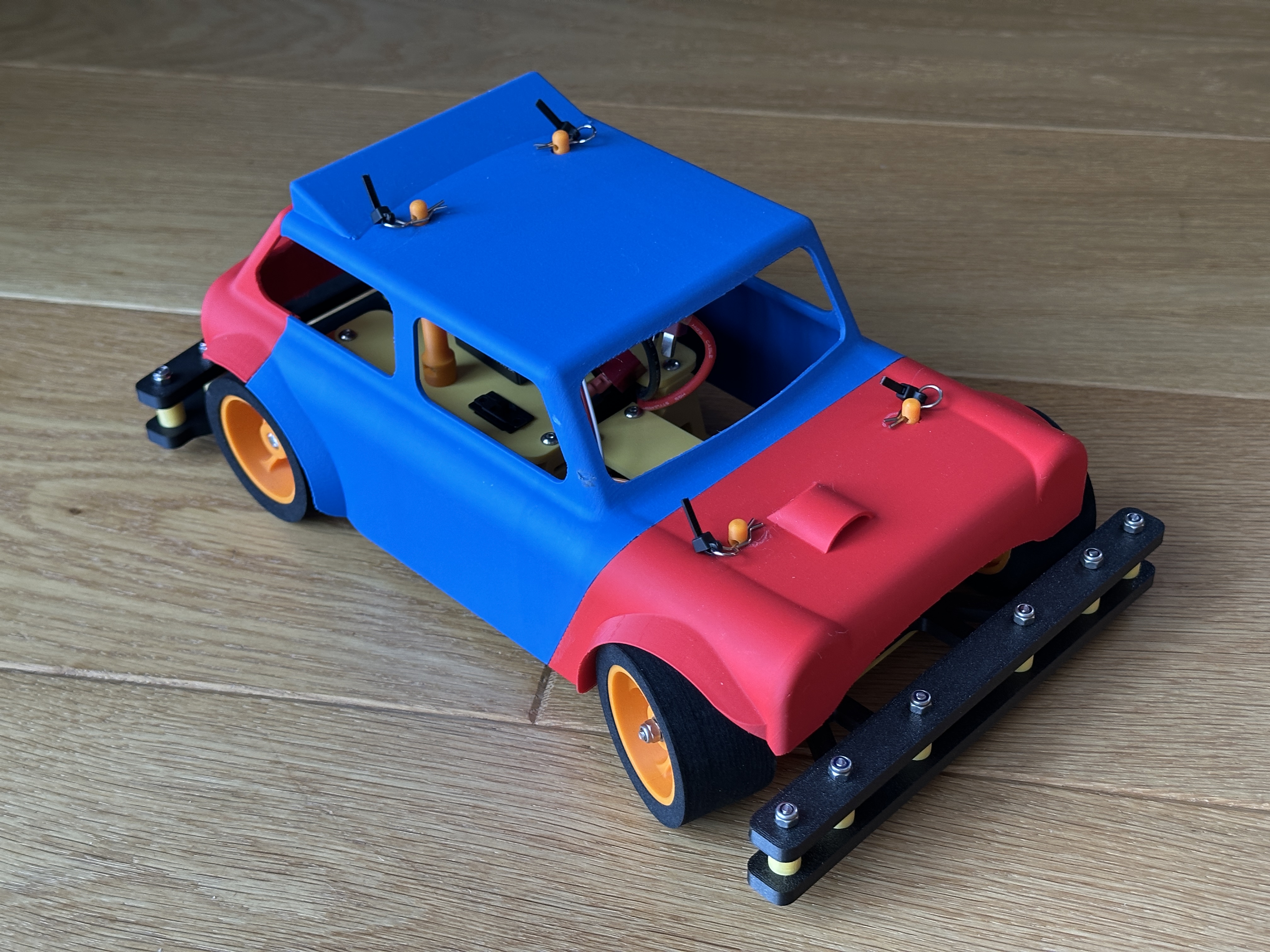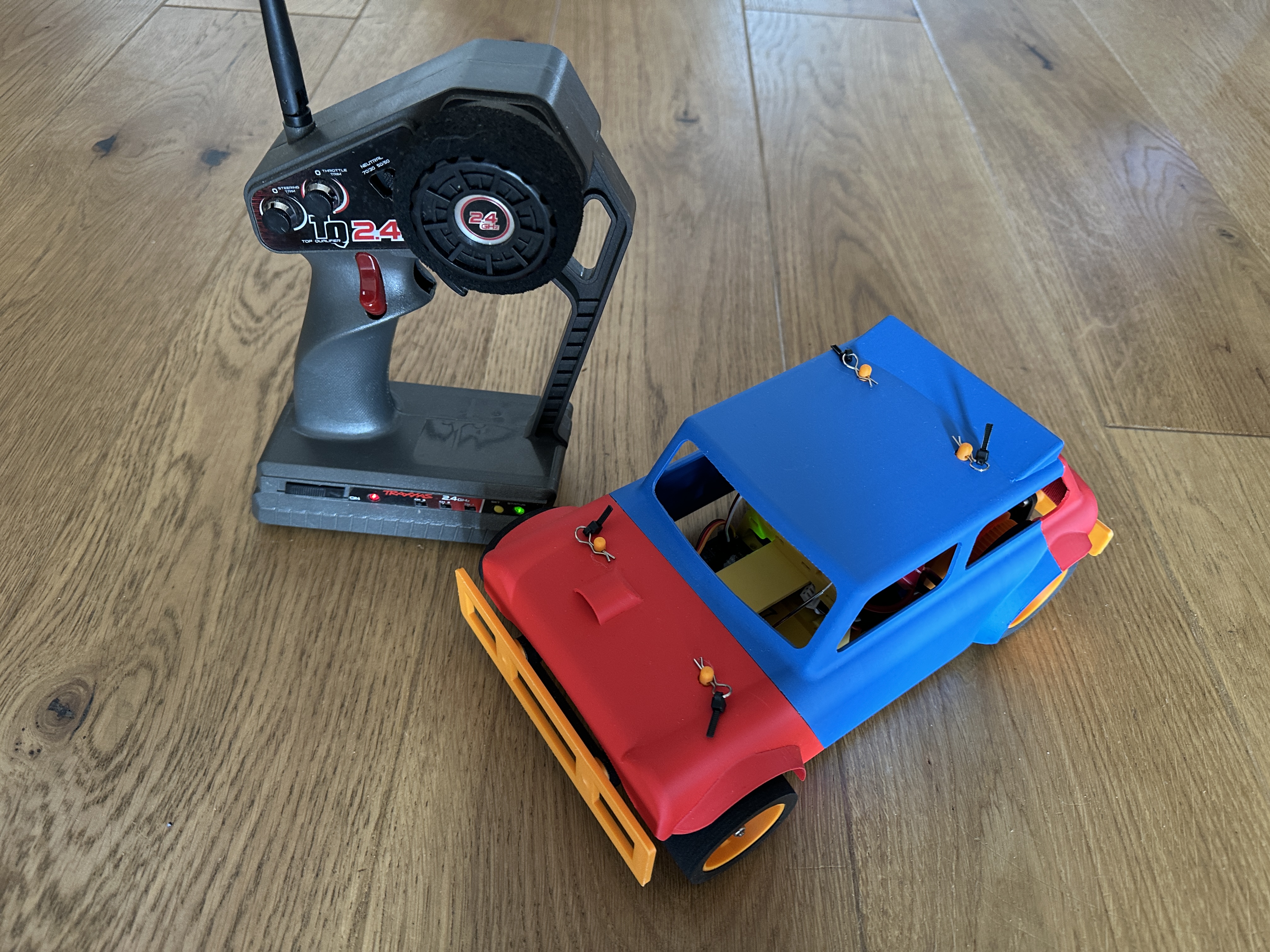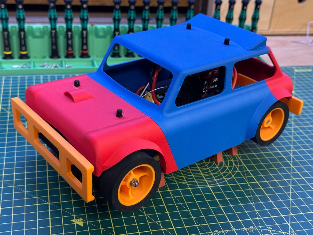 This is my biggest project to date, with a mix of 3D printed parts, RC components, and standard fasteners. Based on an RC car we had as children in the 1980s, I obtained a rough old version from eBay and designed based on that. The challenge was more difficult than originally thought, and only the original chassis dimensions have remained the same with a 178mm wheel base.